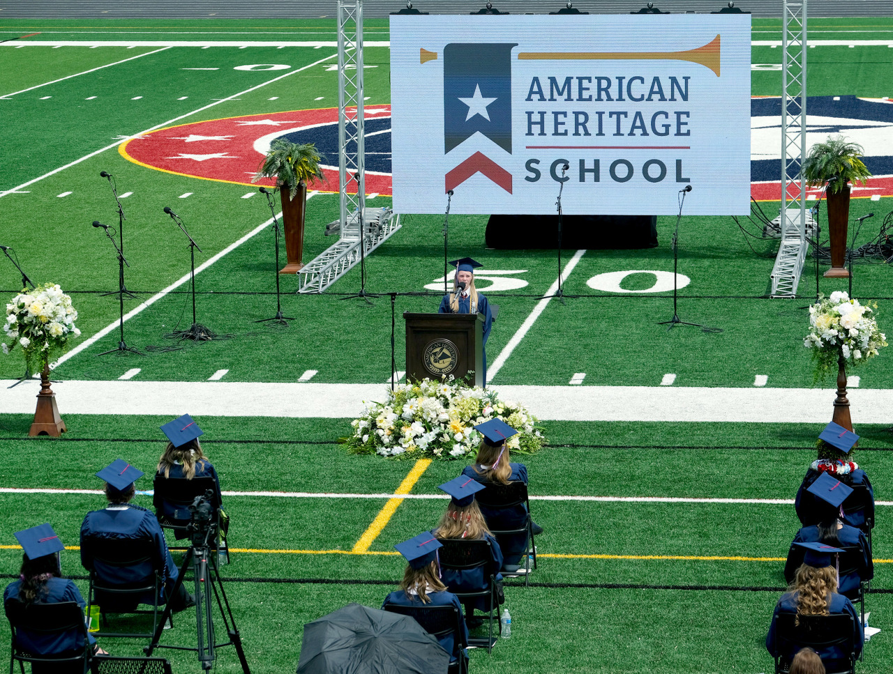 All 59 seniors of American Heritage were invited to attend the graduation ceremony at the school’s stadium on Tuesday while following social distancing guidelines. Elder Craig A. Cardon, an emeritus general authority of the Church of Jesus Christ of Latter-day Saints, gave the commencement address.