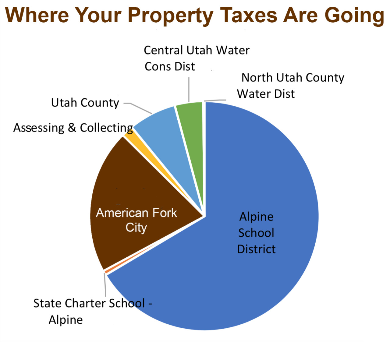 Property tax is American Fork’s second largest source of revenue in the general fund. Still, American Fork only gets a portion of the tax collected. Only 20 percent of property tax paid by American Fork residents is received by the city. The remaining allocations go to Alpine School District, Utah County and Central Utah Water Conservation District.