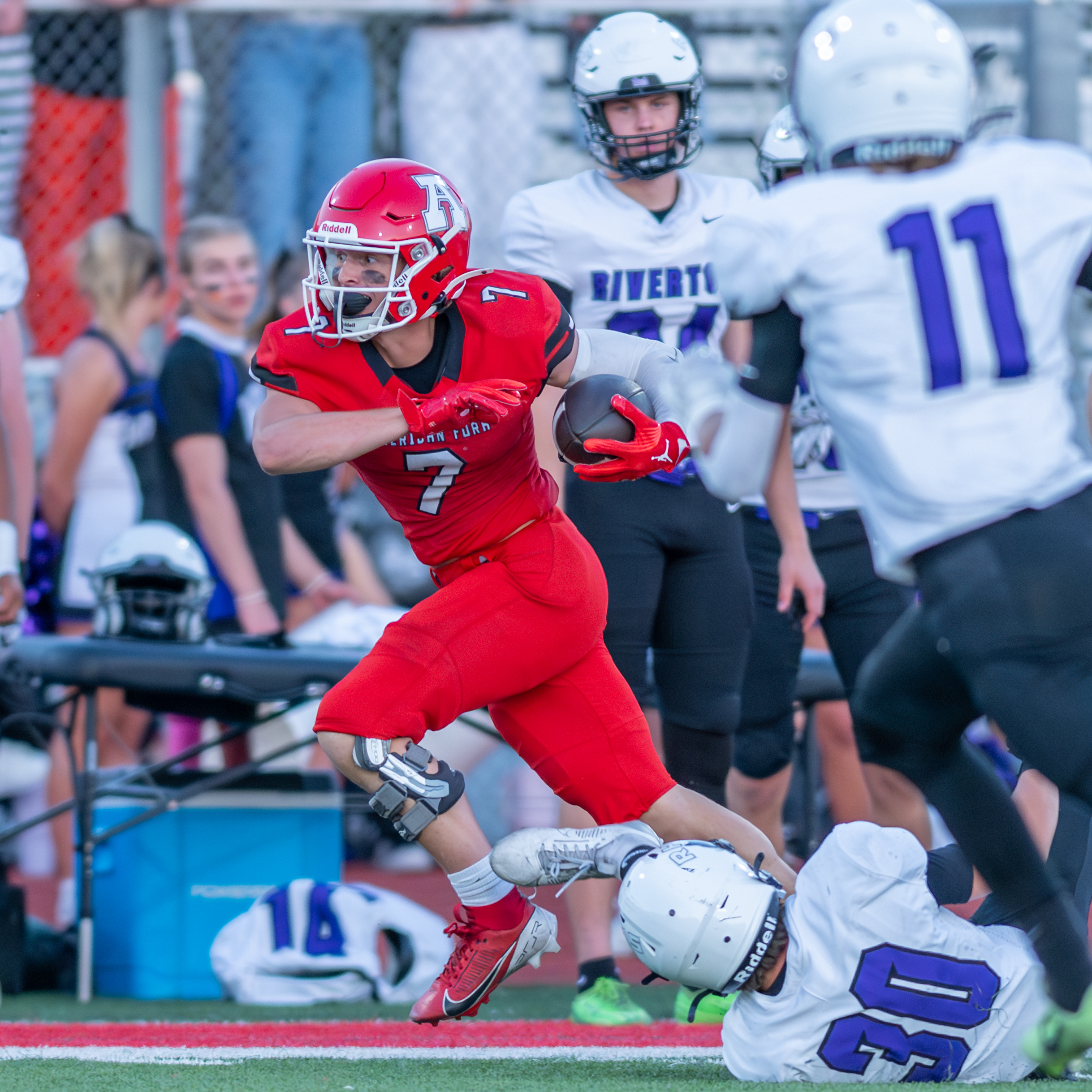 The American Fork football team outlasted the Riverton Silverwolves 27-20 in a non-region 6A battle on Friday (Sept. 6)with the help of a big game from senior wide receiver Will Meine and a solid showing overall by the Cavemen.
