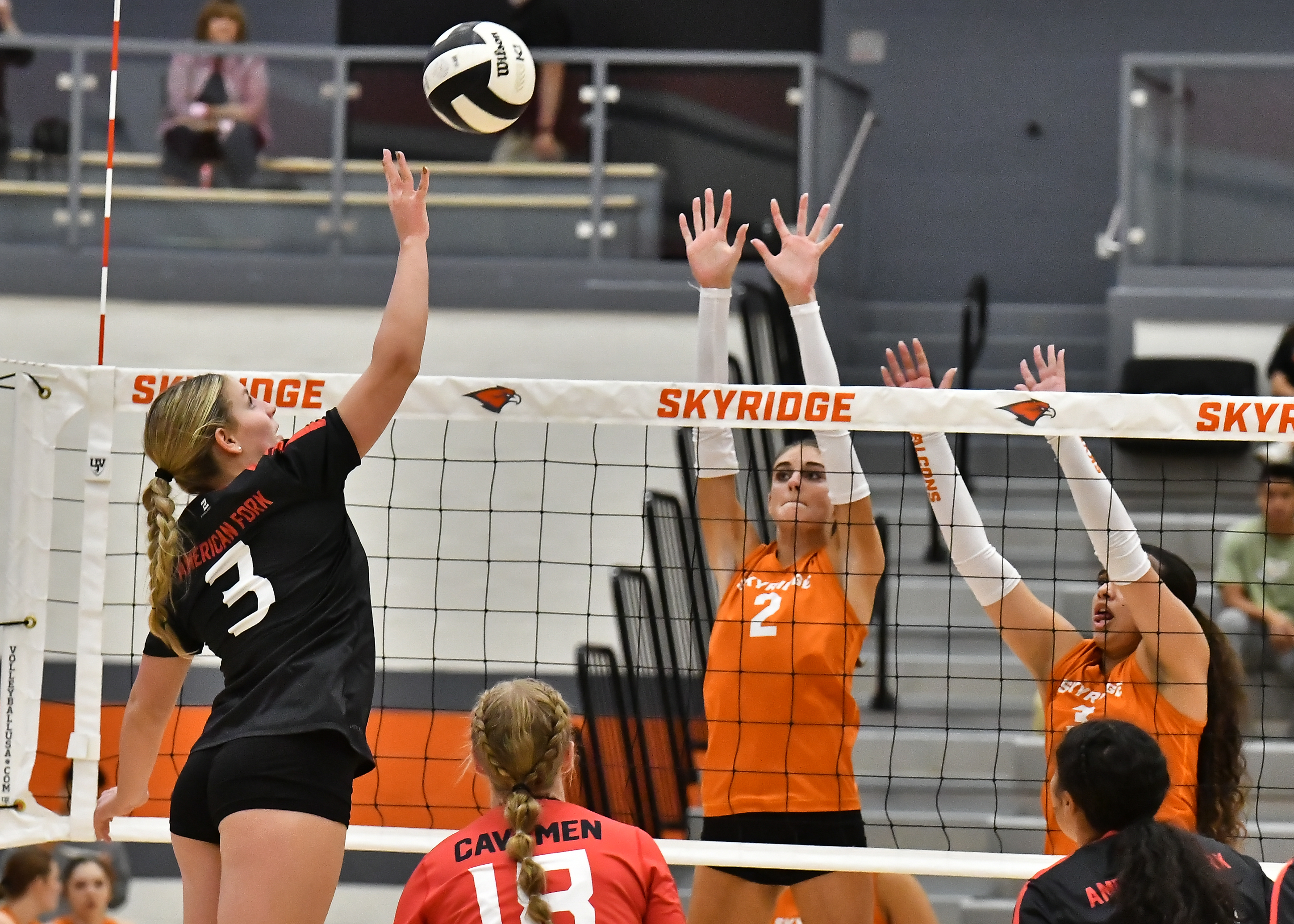 The Cavemen competed well against the No. 5 Falcons, winning the third set. However, Skyridge eventually prevailed 25-19, 25-17, 19-25, 25-13. Melville led the way with 15 kills, four combined blocks, eight digs and 19 serve-receives.