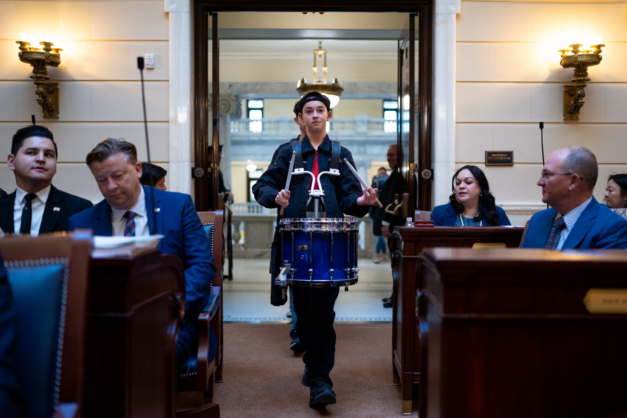 The 2025 Utah State Legislative Session opened to the beat of a new drum as the AFHS Drumline entered the Senate Chambers. The drummers played their popular cadence, welcoming members of the Senate at the Utah State Capitol Building.