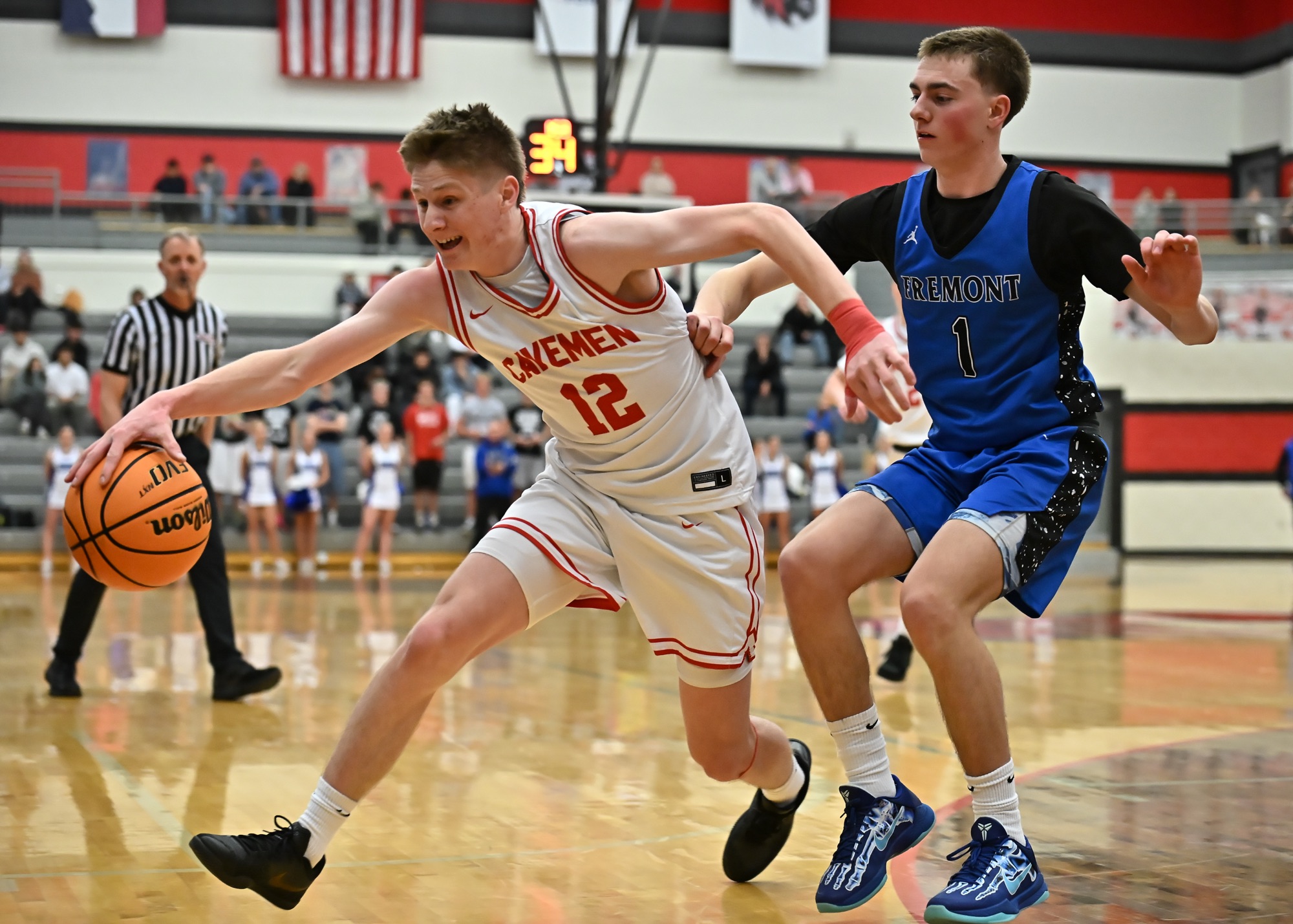 Then it was Mella’s turn to rebound a miss, and he fed it to Flinders for another trey. Fremont got a basket during their subsequent possession, but the Cavemen answered when Oyler passed to Mella for yet another 3-pointer to push the home squad ahead 12-5 just three minutes into the tilt.