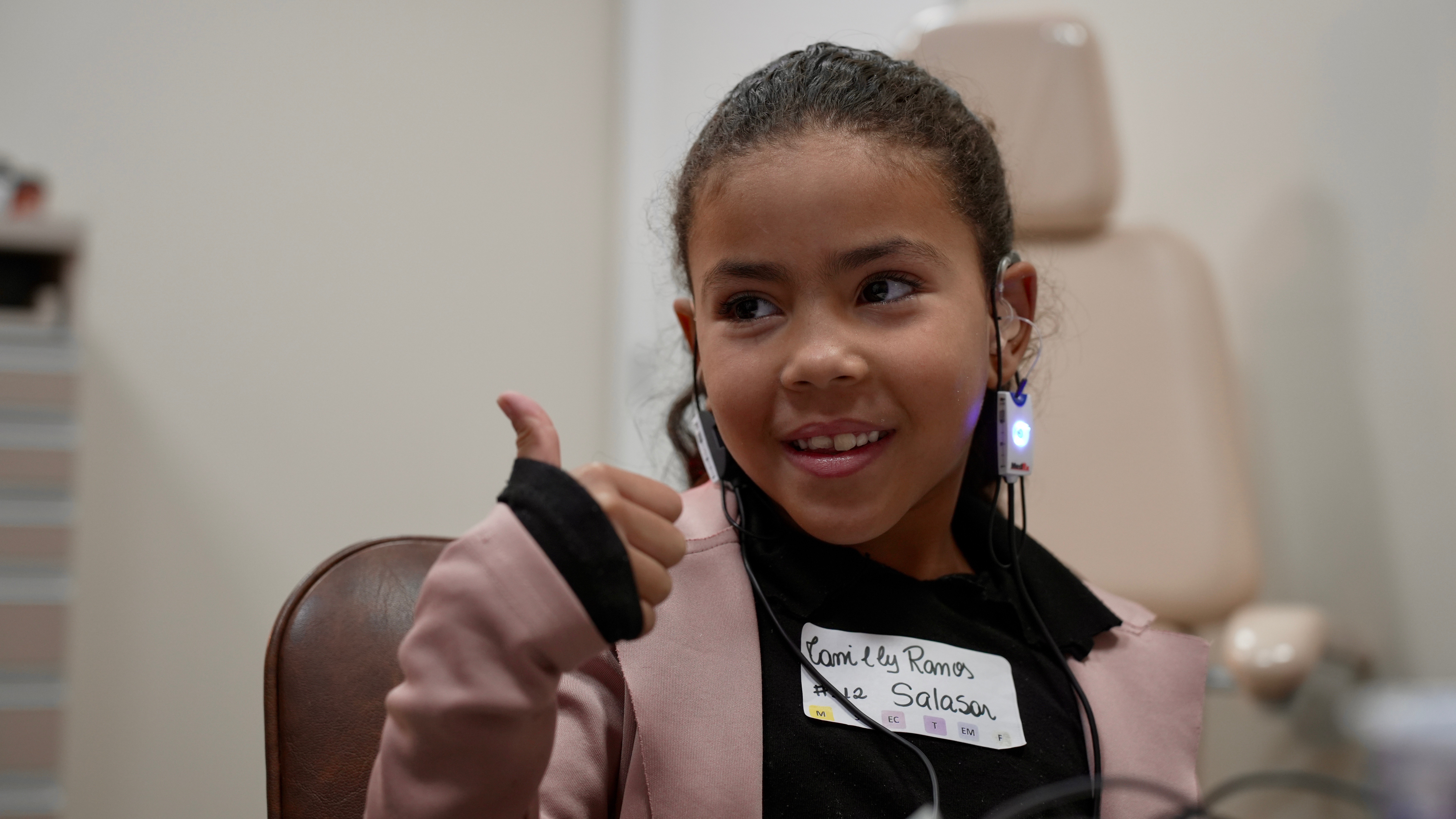 “She told us she had never even heard her own voice,” Kim shared. “It was really cool to put the hearing aids on her for the first time and see her face light up. … Her mom teared up and started crying.”