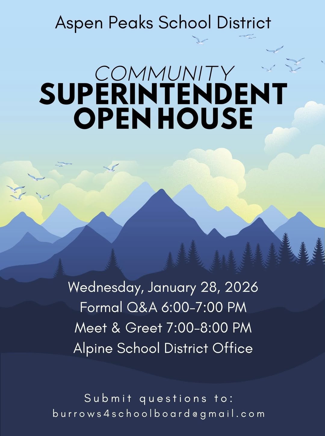 Once the applicant pool has been narrowed to two or three finalists, the district will invite the public to meet the candidates at a Superintendent Community Open House on Wednesday, Jan. 28, at the Alpine School District Office.