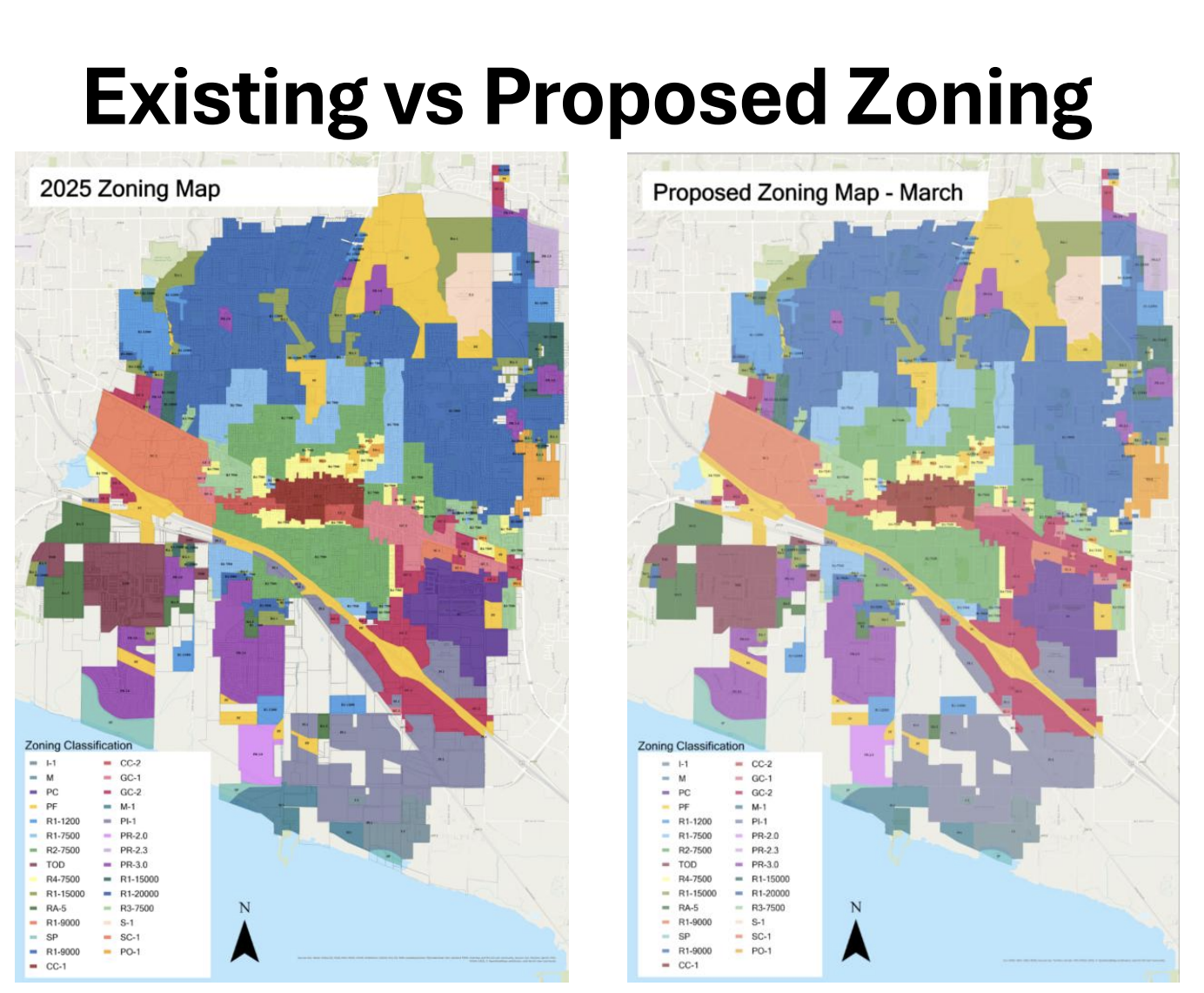The original proposal, which sparked the standing-room-only February public hearing before the Planning Commission, recommended rezoning broad swaths of the city — including residential zones — in ways residents said threatened property rights and neighborhood character.